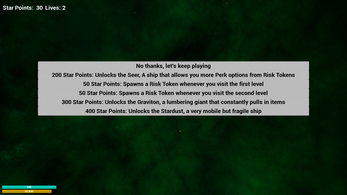 Learn to expertly pilot your ships and land on opposing planets in various levels with simulated solar systems in different shapes and forms. Collect Star Points around planets while dodging supermassive suns with planets - or smaller suns orbiting around them and shop for permanent upgrades that you can use across runs, including unlockable ships with unique handling and abilities. Collect Risk Tokens to take on additional challenges and obtain perks and other rewards during a run, or blow up your ship while trying to do so. You do you!