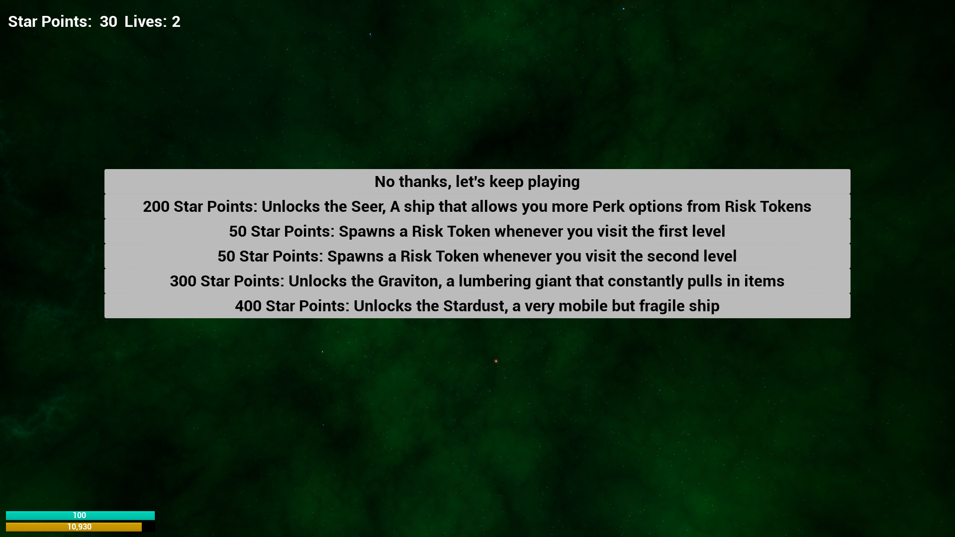 -5 unlockable unique ships and many unlockable perks and bonuses. Accumulate points very quickly to buy new ships and stuff